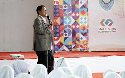 Dalam kesempatan itu, Wabup yang memiliki latar belakang sebagai pengusaha, memberikan motivasi dan dorongan kepada para siswa baru agar bersemangat dan bersungguh-sungguh dalam menuntut ilmu.Karena, imbuhnya, dengan memiliki ilmu pengetahuan yang cukup, dirinya yakin bahwa nantinya ilmu yang ditimba dari sekolah dapat diterapkan dalam kehidupan bermasyarakat. Ia menambahkan, melalui sumber daya manusia yang baik maka akan muncul generasi penerus bangsa yang tangguh bermartabat. “Pati ini...
