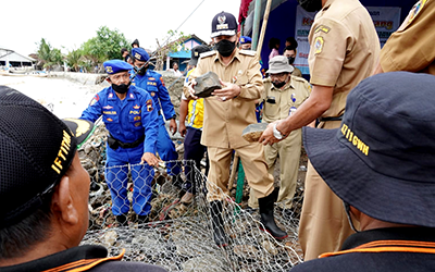 Sebelumnya, tanggul sepanjang 50 meter yang menjadi pembatas antara pantai dan pemukiman warga setempat jebol akibat gelombang air laut pasang pada 25 Mei 2022 lalu.Untuk mengantisipasi adanya gelombang air laut pasang susulan, Bupati Haryanto segera merespon untuk melakukan pembuatan talud darurat berupa kawat bronjong dan juga menyerahkan bantuan sosial dari Korpri dan Baznas Kabupaten Pati “Karena gelombang itu tidak disangka-sangka bisa muncul bisa besar bisa kecil. Kalau semacam ini...